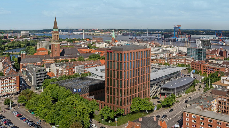Vy över ett somrigt Kiel och hotel Hampton by Hilton Image: Vy över ett somrigt Kiel och hotel Hampton by HiltonHär bor du bara 2km från kryssningsterminalen i hjärtat av Kiel. Runtomkring finns flera restauranger och barer att besöka.