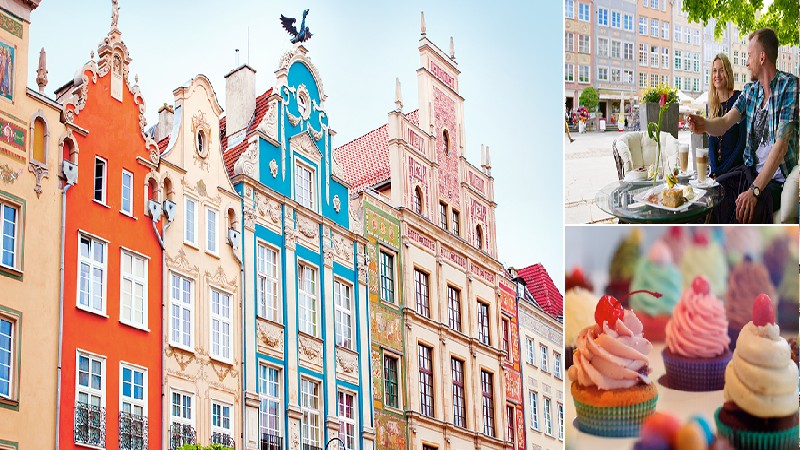 Flera färgglada bilder, bla. byggnader och cupcakes från Gdansk Image: Flera färgglada bilder, bla. byggnader och cupcakes från Gdansk